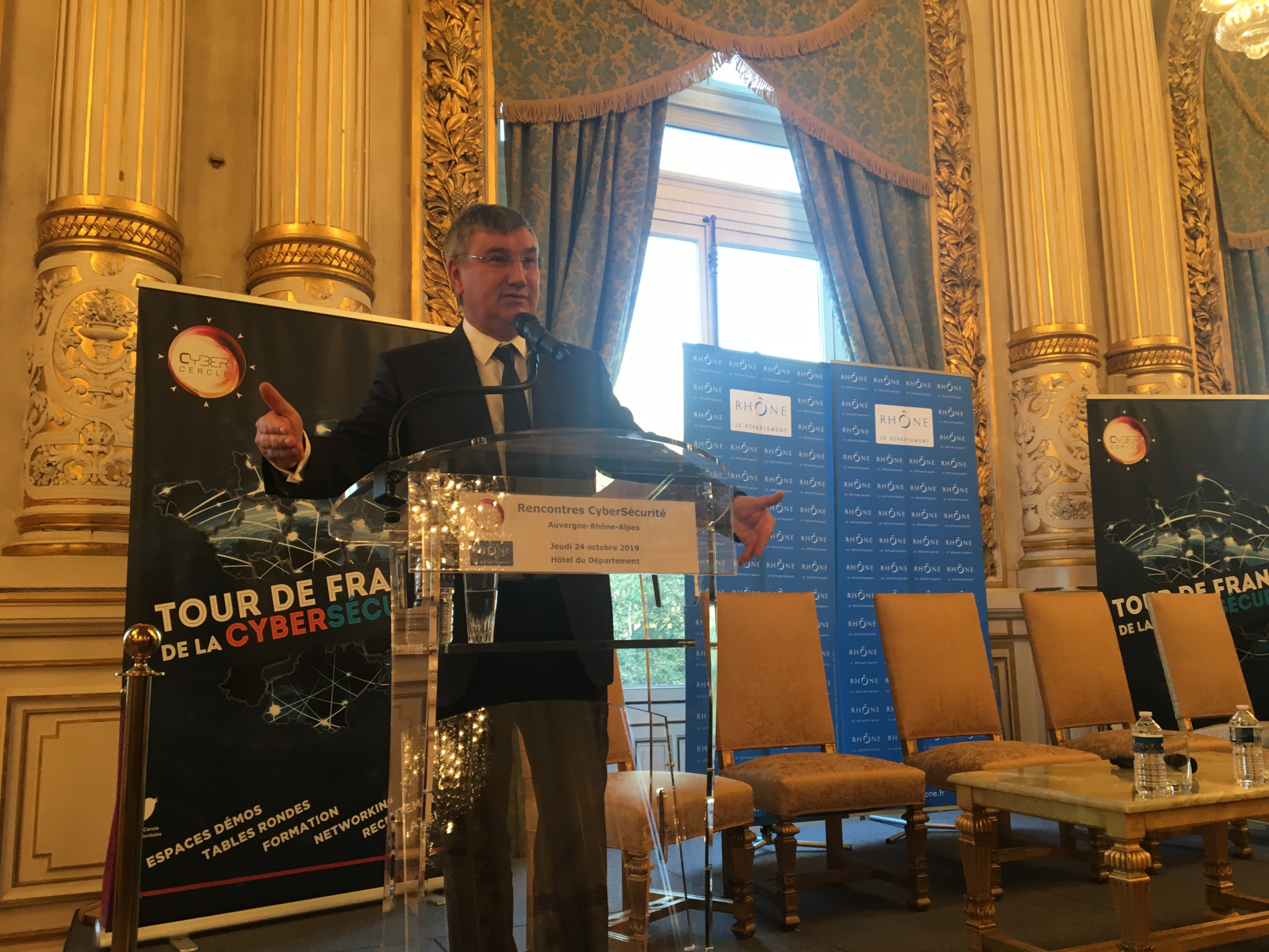 5ème étape du Tour de France de la Cybersécurité 2019, les Rencontres Cybersécurité Auvergne-Rhône-Alpes se sont déroulées le 24 octobre à Lyon dans les salons de l’Hôtel du Département du Rhône, grâce au soutien du Conseil Départemental du Rhône et de son président, Christophe GUILLOTEAU, et de la Région Auvergne-Rhône-Alpes.